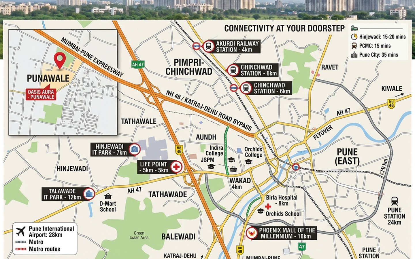 Surrounded by greenery and well-developed infrastructure, Prime Punawale ensures peaceful living while keeping you connected to major IT hubs, schools, and daily conveniences..